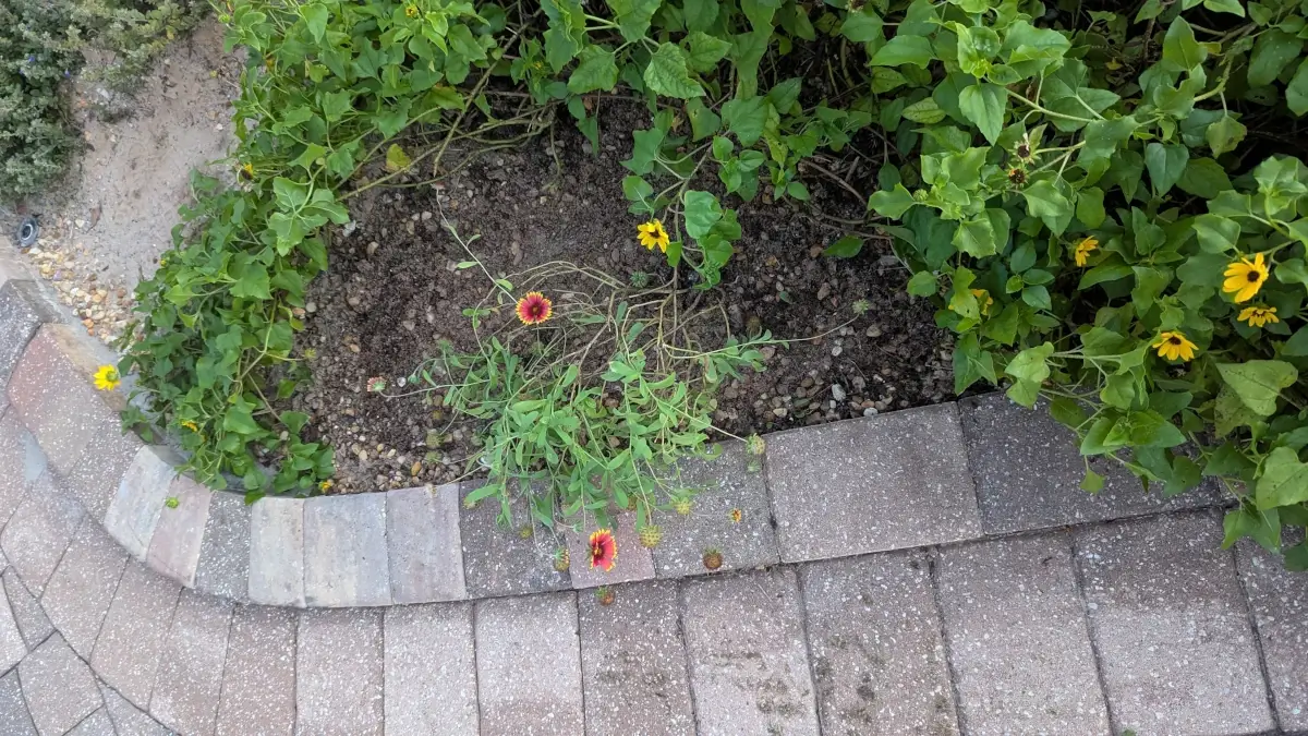 Weed the southwest bed. Prune the dune sunflowers in the southwest bed. Expose the blooming gallardia. 5:25-7:15